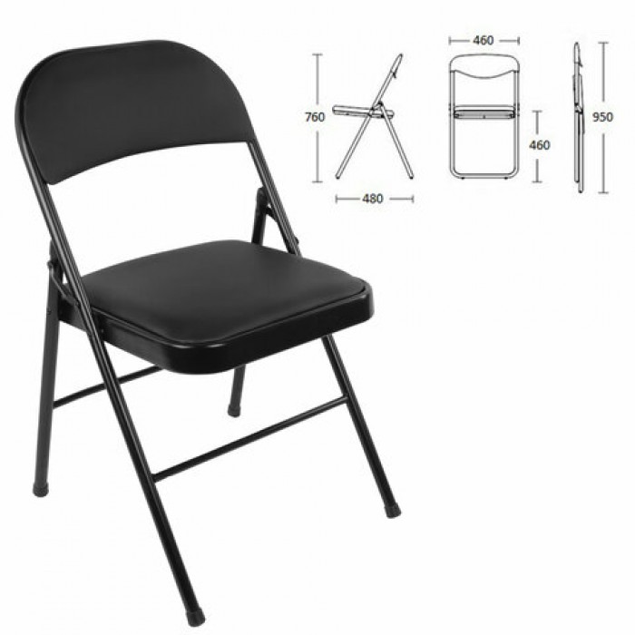 Стул складной BRABIX "Golf Plus CF-003 Комфорт", черный каркас, кожзам черный, 531566