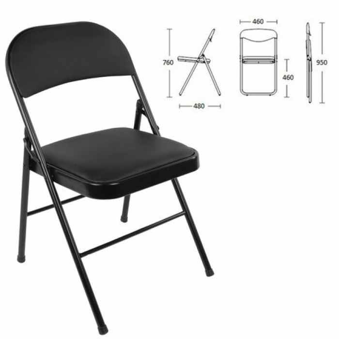 Стул складной BRABIX "Golf Plus CF-003 КОМФОРТ", черный каркас, кожзам черный, В КОРОБЕ, 533026