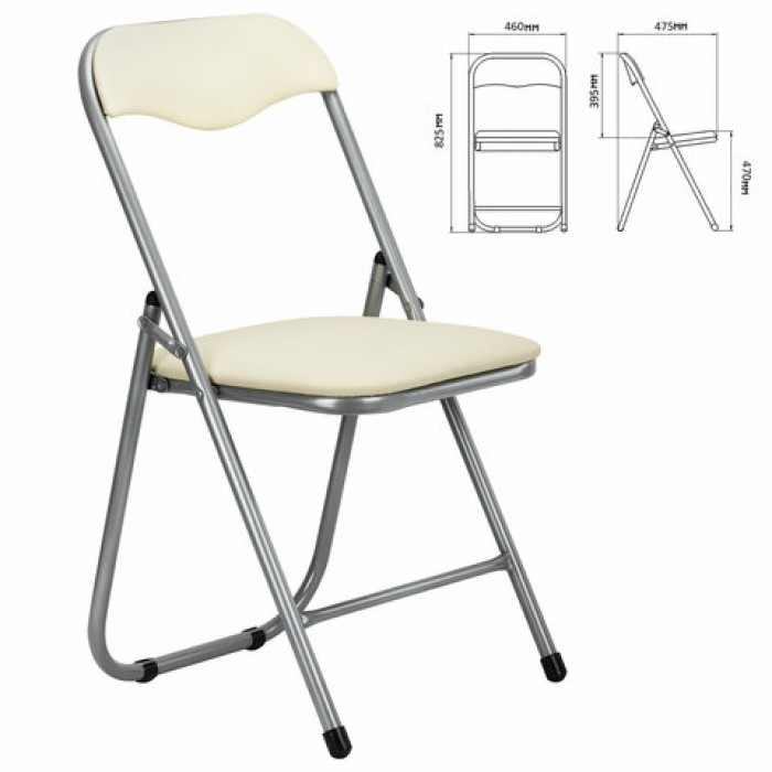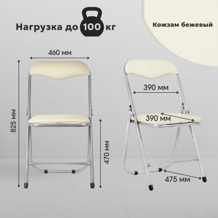 Стул складной для дома и офиса РС04, серебристый каркас, кожзам бежевый