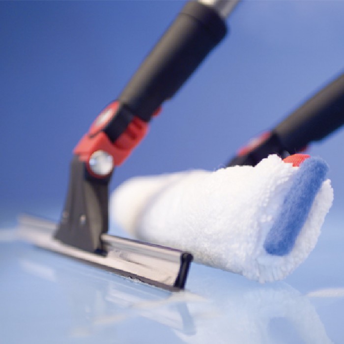 Склиз для удаления влаги после мытья окон. Оснащен двумя поворотными механизмами, который позволяет сделать работу более эргономичной в случае ограниченности пространства. Держатель склиза имеет дополнительный механизм изменения угла на 30°.