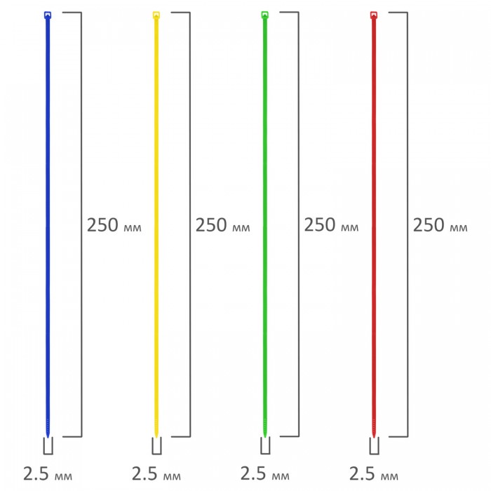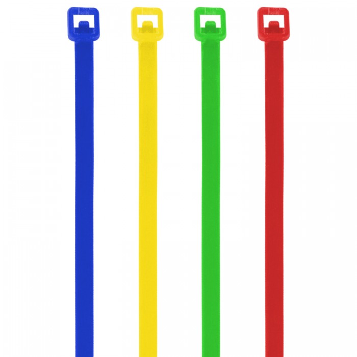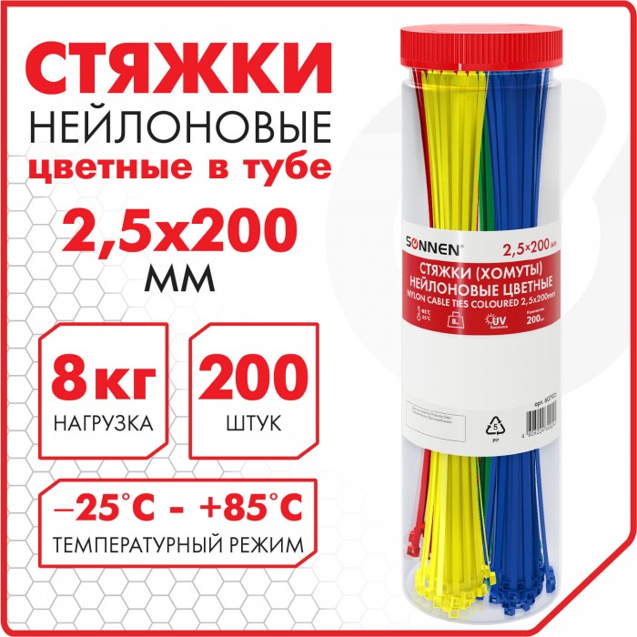 Стяжки (хомуты) нейлоновые сверхпрочные ЦВЕТНЫЕ в тубе 2,5х200 мм, КОМПЛЕКТ 200 шт., SONNEN, 607925
