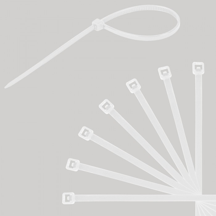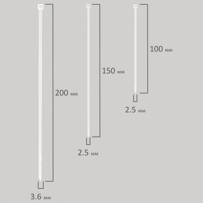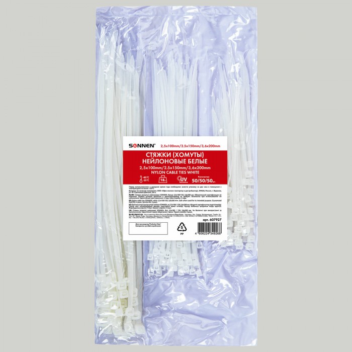 Стяжки (хомуты) нейлоновые сверхпрочные НАБОР 150 шт. (2,5х100/150 мм; 3,6х200 мм), белые, SONNEN, 607927