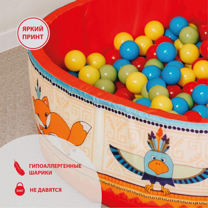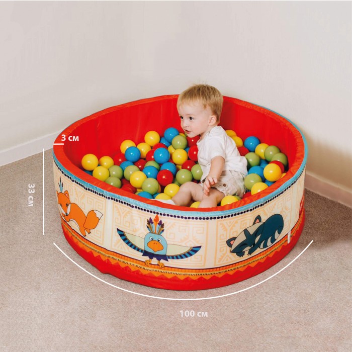 Сухой бассейн с шариками «Индейцы» — веселая забава для дома или детской комнаты в учебном заведении. Может быть использован как отдельная игровая зона, либо в сочетании с другими игровыми и спортивными комплексами от ROMANA. Дети найдут ему применение как для игр, так и для отдыха. Родители могут приобрести его также в качестве манежа для малышей. Сухой бассейн «Индейцы» красного цвета, дизайн содержит орнаменты и веселых персонажей. Это достаточно компактный элемент интерьера, он не займет много места в помещении. Сухие бассейны безопасны, у них нет твердых или острых частей. Шарики сделаны из экологически чистой пластмассы, их удобно мыть и чистить. Сам бассейн также хорошо очищается от грязи и влаги. Купите сухой бассейн с шариками «Индейцы», дети будут в восторге!