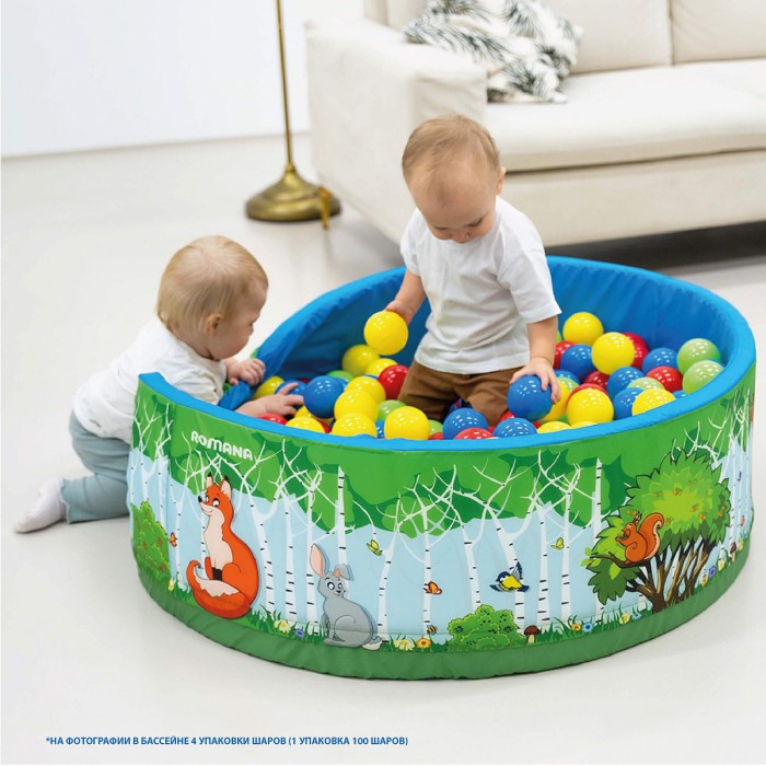Сухой бассейн с шариками «Зверята» — веселая забава для дома или детской комнаты в учебном заведении. Может быть использован как отдельная игровая зона, либо в сочетании с другими игровыми и спортивными комплексами от ROMANA. Дети найдут ему применение как для игр, так и для отдыха. Родители могут приобрести его также в качестве манежа для малышей. Сухой бассейн «Зверята» синего цвета, в дизайне забавные зверушки и деревья. Это достаточно компактный элемент интерьера, он не займет много места в помещении. Сухие бассейны безопасны, у них нет твердых или острых частей. Шарики сделаны из экологически чистой пластмассы, их удобно мыть и чистить. Сам бассейн также хорошо очищается от грязи и влаги. Купите сухой бассейн с шариками «Зверята», дети будут в восторге!