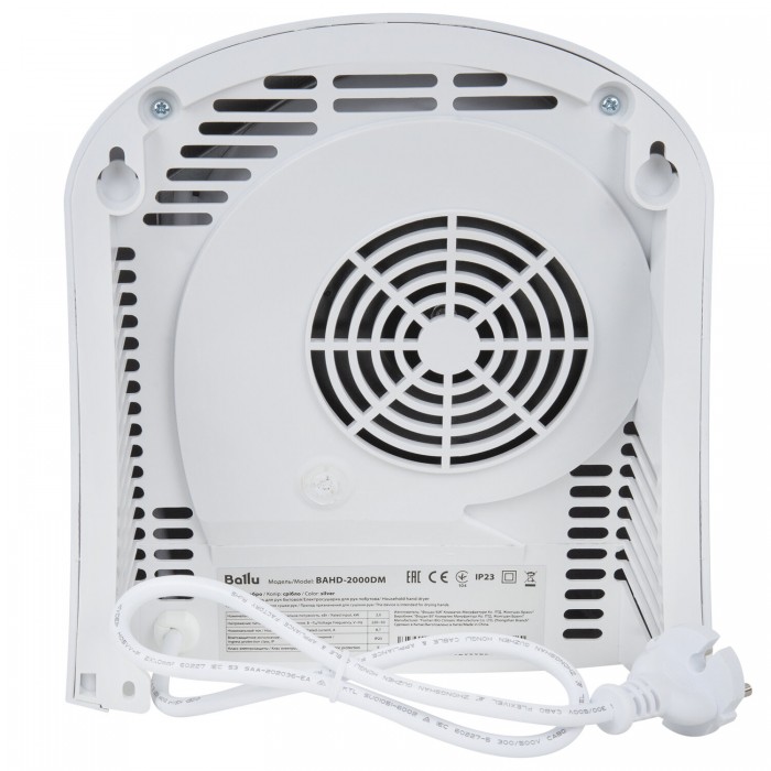 Сушилка для рук BALLU BAHD-2000DM Silver, 2000 Вт, пластик, серебро