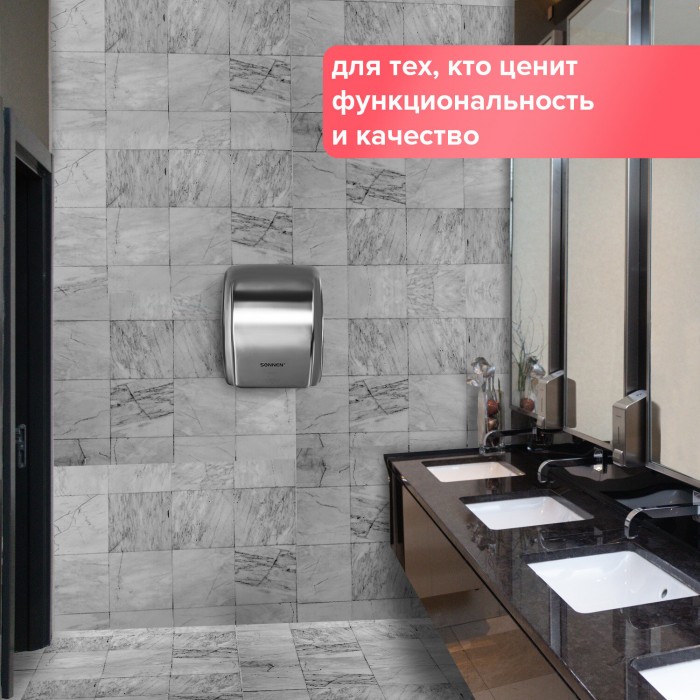 Сушилка для рук SONNEN HD-230S, 2100 Вт, нержавеющая сталь, антивандальная, хром, 604195