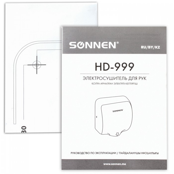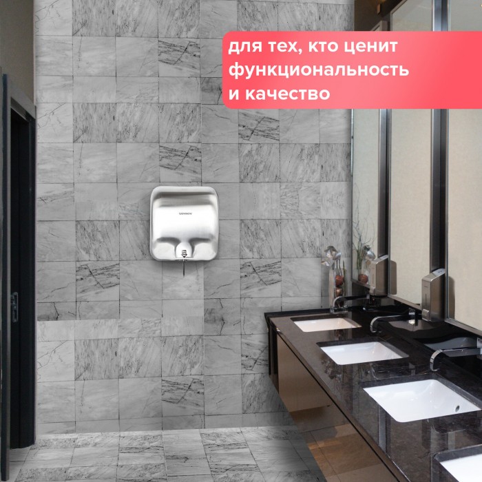 Электросушилка для рук SONNEN HD-999 - качественная и удобная модель аксессуаров для презентабельного вида туалетных комнат и высокого уровня гигиены.