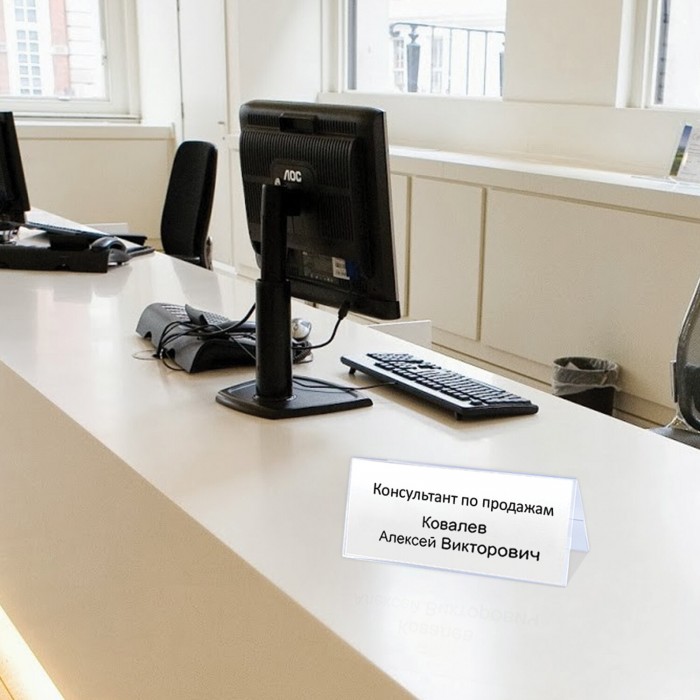 Табличка информационная, 210х80 мм (домик), настольная, двусторонняя, оргстекло, в защитной плёнке, BRAUBERG, 290426