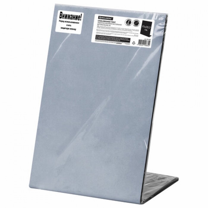 Табличка меловая настольная А4 (21x29,7 см), L-образная, вертикальная, ПВХ, ЧЕРНАЯ, BRAUBERG, 291292