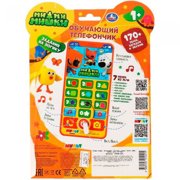 Размер упаковки: 16*2*23 см Функционал: музыкальная игрушка, обучающие функции, звуковые эффекты Упаковка: блистер на картоне с подвесом Страна обладатель бренда: Россия Материал: пластик Комплектация: телефона - 1 шт. Возраст ребенка: от 1 года Оригинальный яркий телефон предназначен для активных игр и развития мелкой моторики и координации движений. Музыкальный телефон оборудован кнопками, нажимая на которые можно прослушать мелодии. Он предназначен для активных игр и развития мелкой моторики и координации движений. Проигрывает стихи и песенки. Световые эффекты. Обучающие функции. Кнопка “Вкл./Выкл.” Яркая расцветка развлечет малыша и привлечет его внимание. Игрушка учит пониманию причинно-следственной связи, помогает тренировать моторику и координацию движений, восприятие формы и цвета. Музыкальная игрушка оборудована кнопками, нажимая на которые можно прослушать мелодии. Игрушка привлекает внимание и способствует развитию тактильного, зрительного и слухо