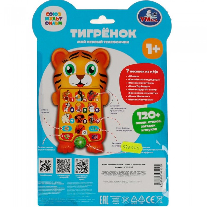 Телефон Тигрёнок СОЮЗМУЛЬТФИЛЬМ 120 песен, звуков