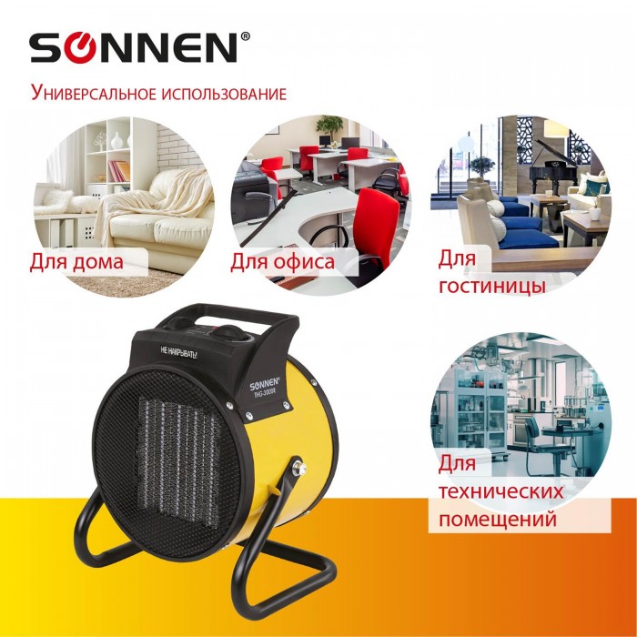 Тепловая пушка электрическая SONNEN THG-3000R, 3 кВт, 220В, керамический нагреватель, 456193