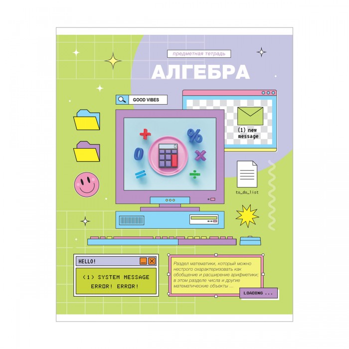 Тетрадь предметная «Алгебра» из серии "Пиксель" (в серии 12 предметов), со справочным материалом на обложке. Формат А5, размер – 165*205 мм. Вид крепления – скрепка. Внутренний блок состоит из 48 листов офсетной бумаги плотностью 60 г/м². Белизна 92%, линовка – клетка с полями. Обложка выполнена из мелованной бумаги с отделкой ВД-лаком. • Количество листов: 48; • Формат: А5; • Справочные материалы: на обложке; • Линовка: клетка.