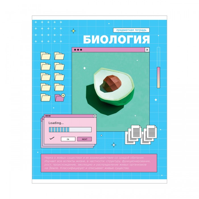 Тетрадь предметная «Биология» из серии "Пиксель" (в серии 10 предметов), со справочным материалом на обложке. Формат А5, размер – 165*205 мм. Вид крепления – скрепка. Внутренний блок состоит из 48 листов офсетной бумаги плотностью 60 г/м². Белизна 92%, линовка – клетка с полями. Обложка выполнена из мелованной бумаги с отделкой ВД-лаком. • Количество листов: 48; • Формат: А5; • Справочные материалы: на обложке; • Линовка: клетка.