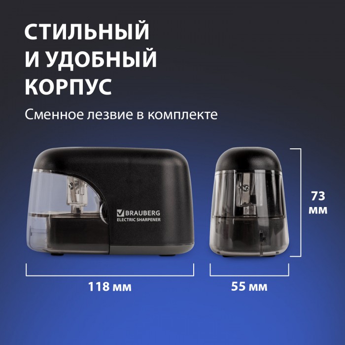 Точилка электрическая BRAUBERG "Black Jack", питание от 4 батареек АА, дополнительное сменное лезвие, 228424
