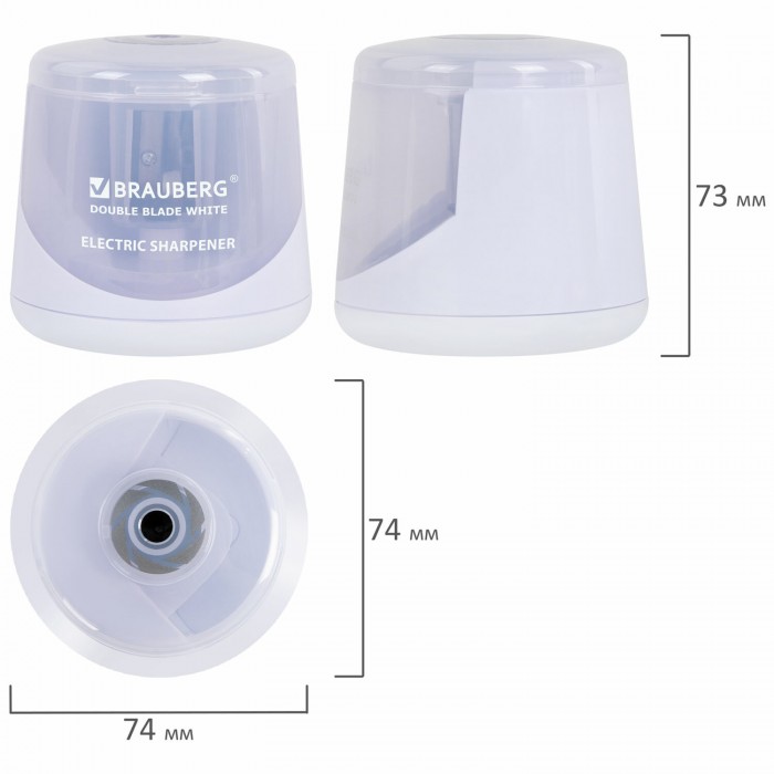 Точилка электрическая BRAUBERG DOUBLE BLADE WHITE, двойное лезвие, питание от 2 батареек, 271337