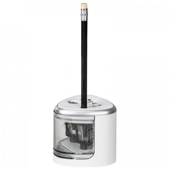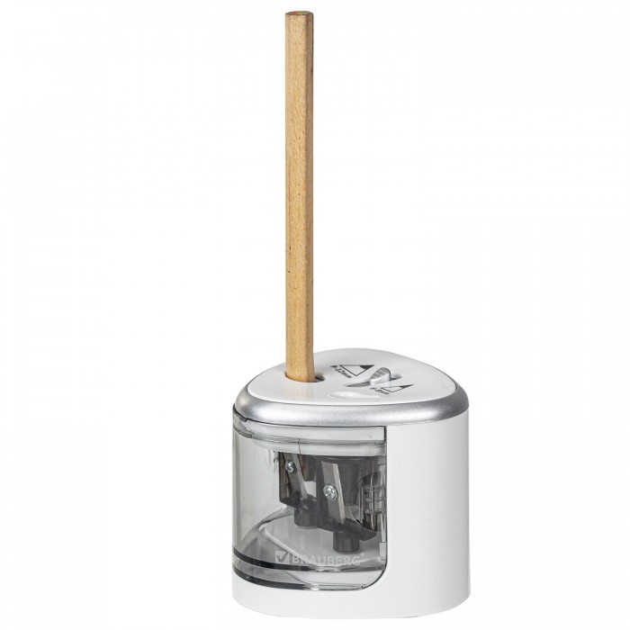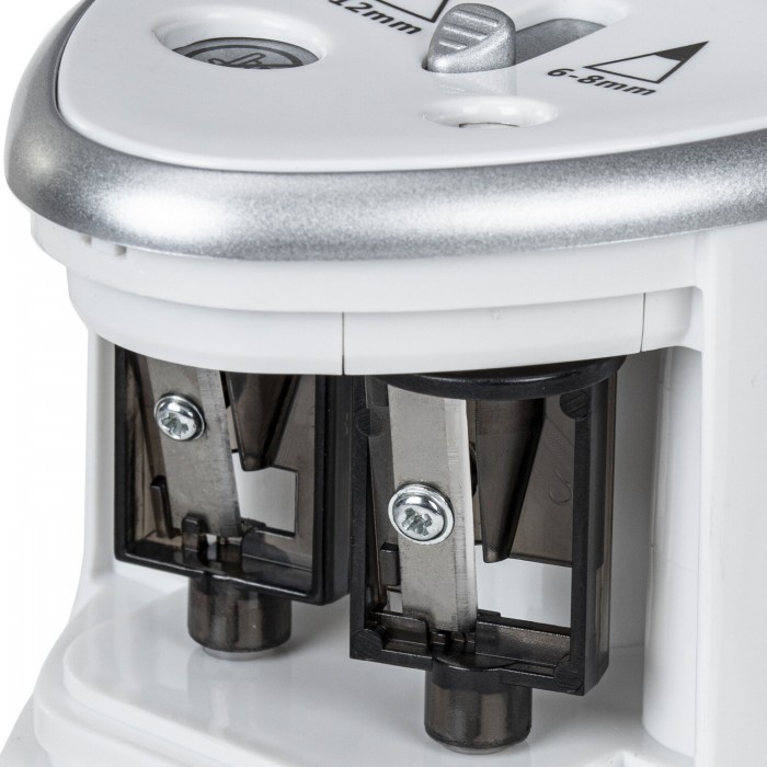 Точилка электрическая BRAUBERG DUAL (для 2 диаметров карандашей!), 4 батарейки АА, белая, 270580