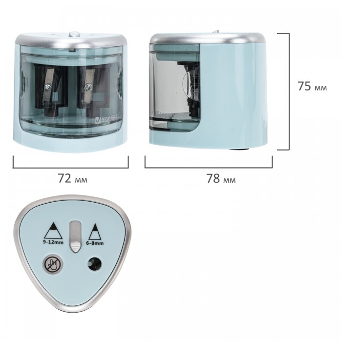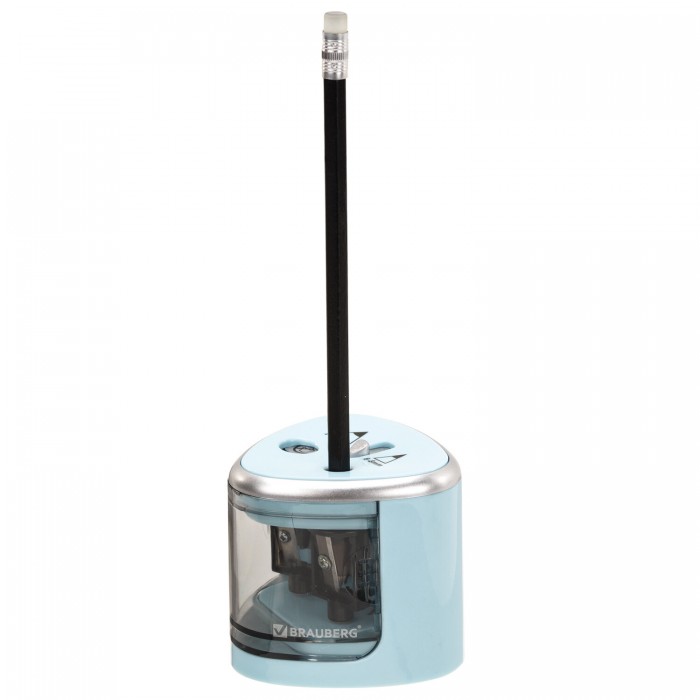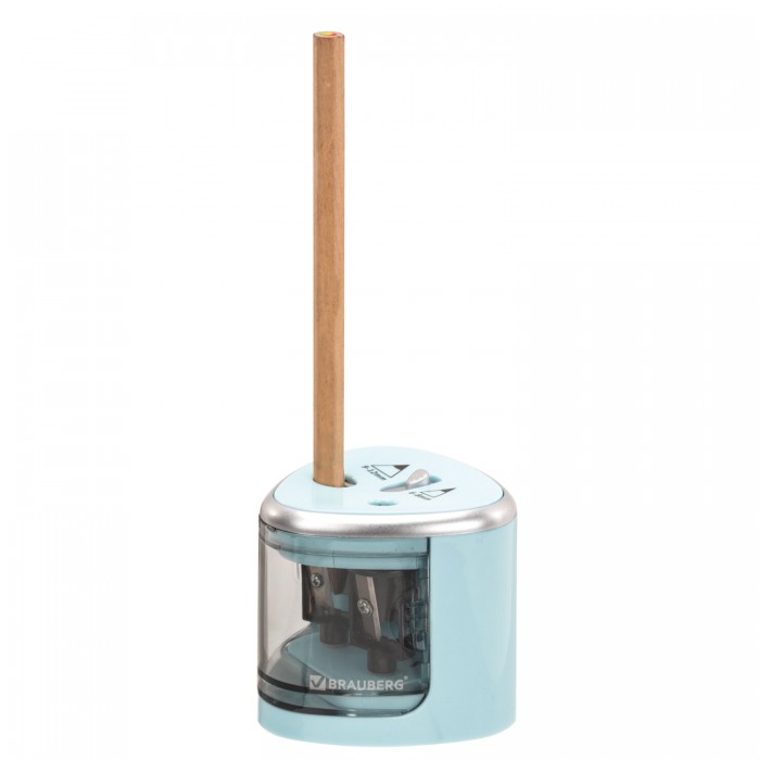 Точилка электрическая BRAUBERG DUAL (для 2 диаметров карандашей!), 4 батарейки АА, голубая, 270578