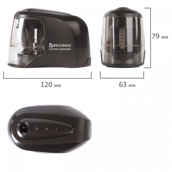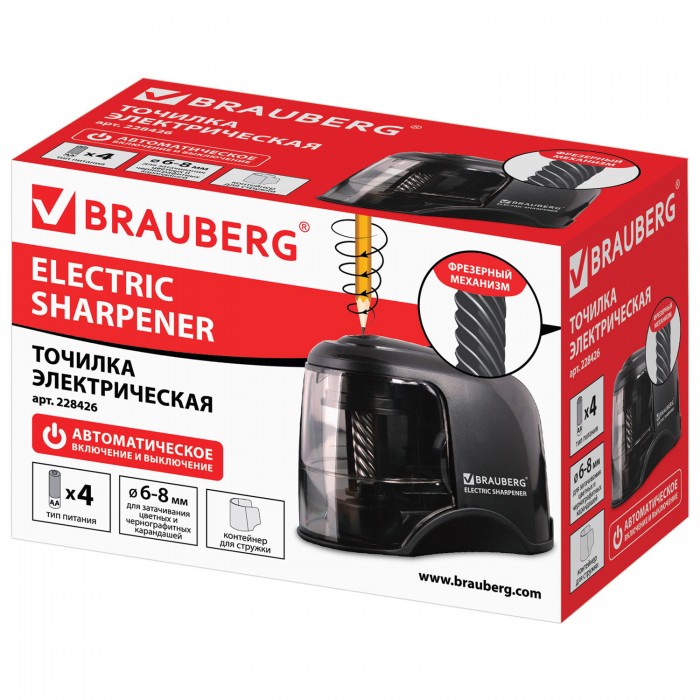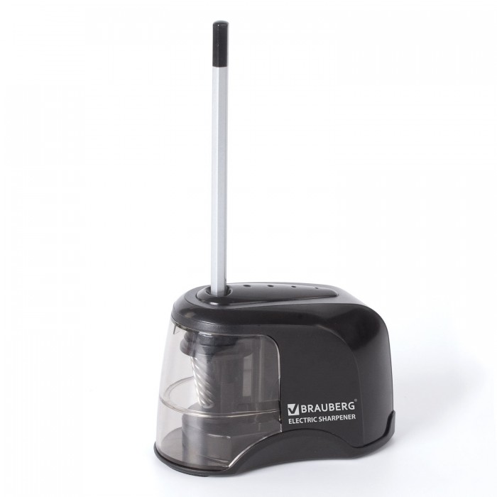Электрическая точилка со съемным контейнером для сбора мусора и стальным спиралевидным лезвием, работает от 4 батареек АА (в комплект не входят). Предназначена для затачивания деревянных и пластиковых карандашей диаметром 6-8 мм.