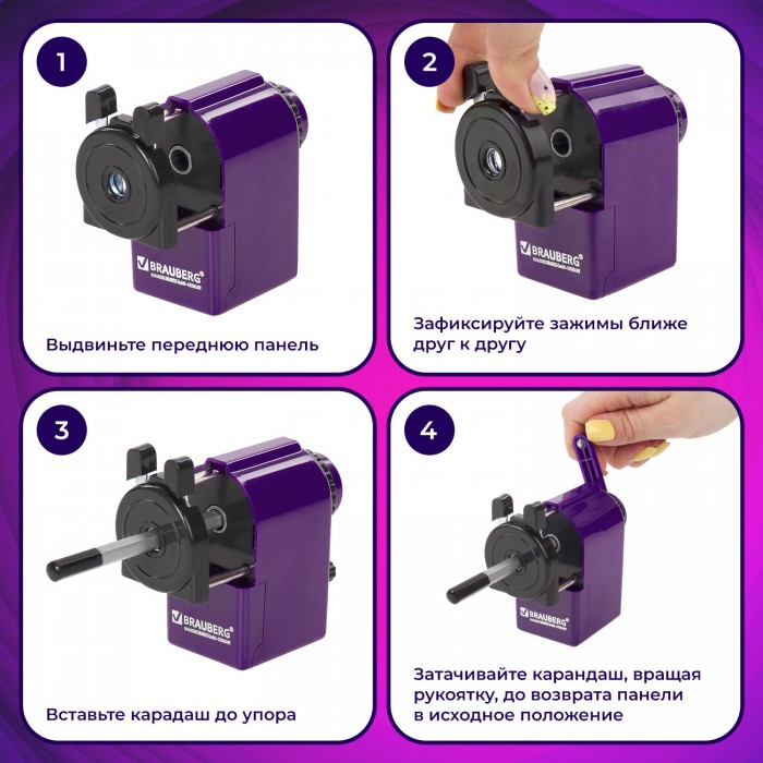 Точилка механическая BRAUBERG "JET", металлический механизм, корпус фиолетовый, 229569