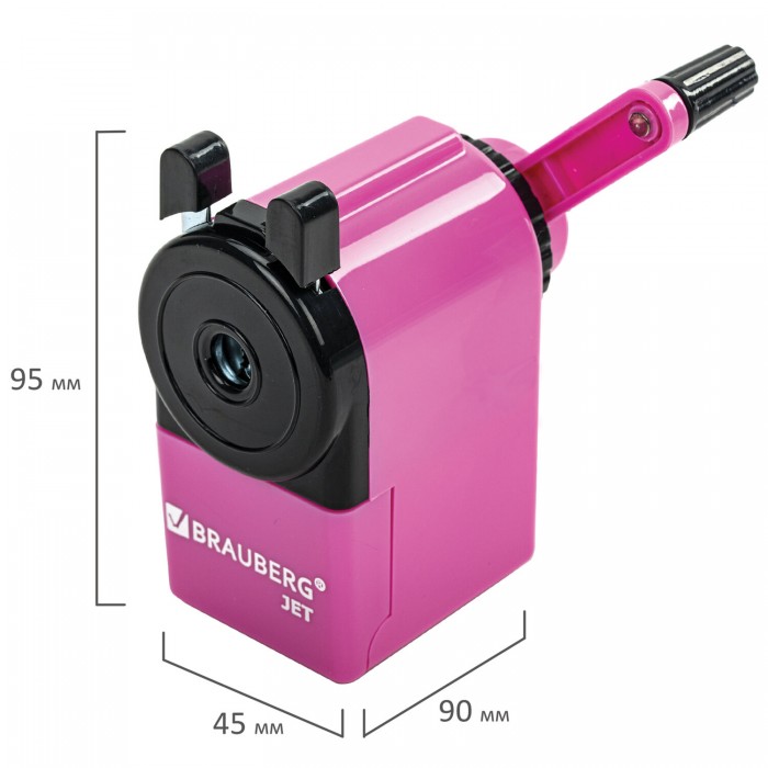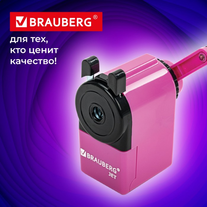 Точилка механическая BRAUBERG "JET", металлический механизм, корпус розовый, 229568