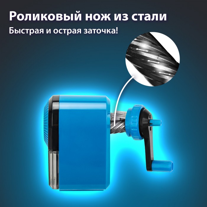 Точилка механическая BRAUBERG ULTRA для чернографитных и цветных карандашей, крепление к столу, цвет корпуса голубой с черным, 271342