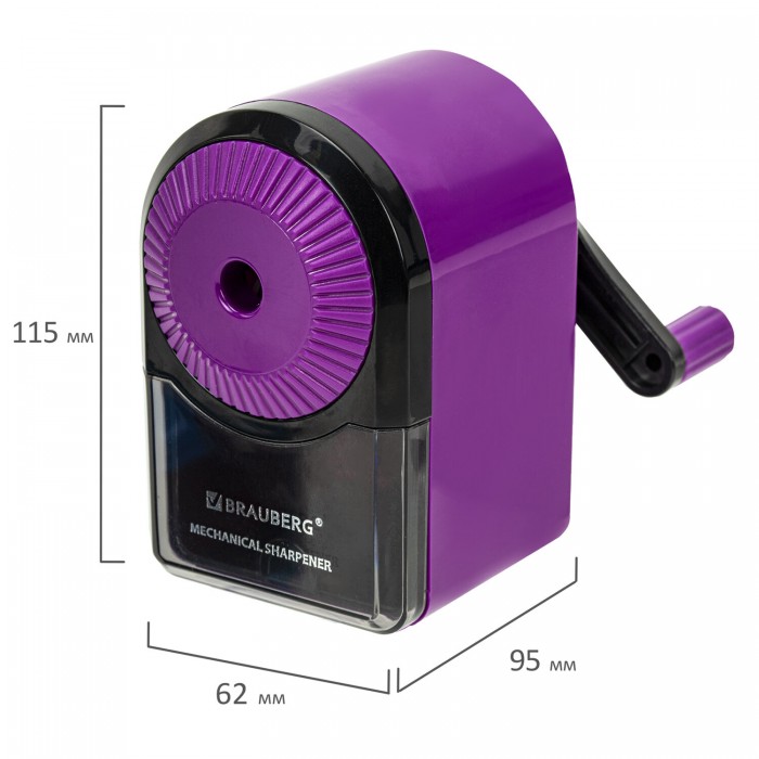 Точилка механическая BRAUBERG ULTRA для чернографитных и цветных карандашей, крепление к столу, цвет корпуса сиреневый с черным, 271341
