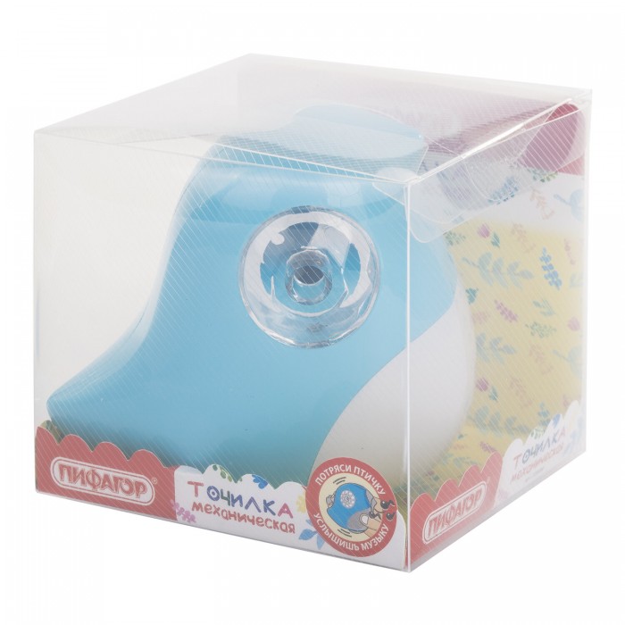 Точилка механическая ПИФАГОР "Птичка", корпус голубой, 228490