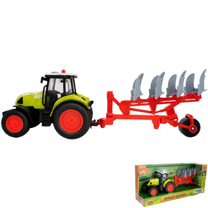 Размер упаковки: 42 х 12 х 19 см Вид упаковки: картонная коробка Размер игрушки: 38,5 х 10 х 12,5 см Функционал: игрушки для мальчиков Страна производитель: КНР Материал: пластик Комплектация: игрушечный трактор с плугом – 1 шт. Батарейки: 3*AG13/LR44 (в комплекте) Возраст ребенка: 3+ Трактор – это специальная машина, которая выполняет сельскохозяйственную и дорожно-строительную работу. И, наверняка, каждый мальчик хотел бы заполучить в свою коллекцию игрушек трактор. Игрушечный трактор от ТМ «Young Racer» имеет достаточно реалистичный внешний вид и оснащен инерционным механизмом. У него большие прорезиненные колеса, которые с легкостью проедут бездорожье и преодолеют любые преграды. К трактору прикреплен плуг, благодаря которому можно бороздить песок в песочнице или грядку в огороде. Игрушка изготовлена из высококачественного, прочного и гипоаллергенного пластика. С таким трактором можно создать ферму, устроить настоящую стройку и много других сюжетно-ролевых игр. П