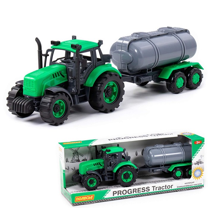 Трактор "Прогресс" с прицепом-цистерной инерционный зеленый в коробке 91567 П-Е /8/