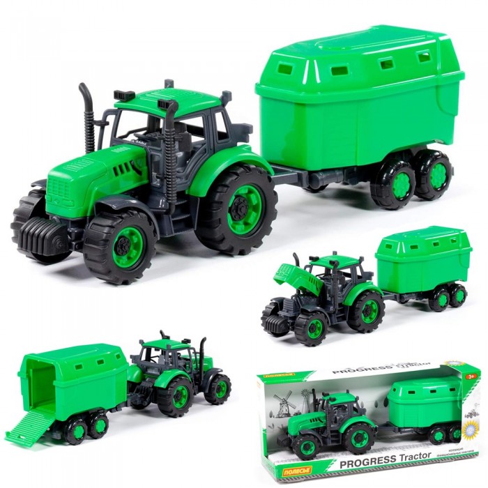 Трактор "Прогресс" с прицепом для перевозки животных инерционный зелёный 91482 П-Е /8/
