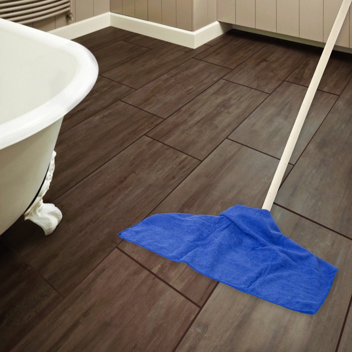 Тряпки для мытья пола, КОМПЛЕКТ 3 шт., ПЛОТНАЯ микрофибра, 50х60 см, синие, 260 г/м2, ЛЮБАША "ПЛЮС", 603944