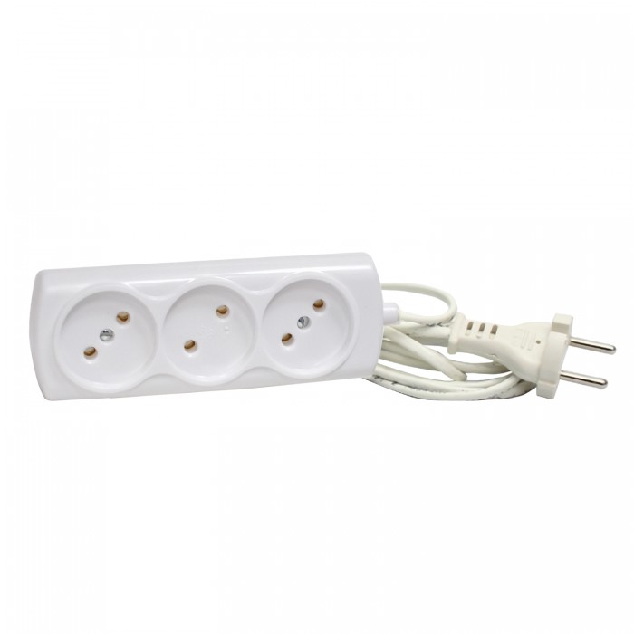 Удлинитель Р16-010, 3 розетки без заземления, 1,5 м, 2х0,75 мм, 1300 Вт, белый, 561