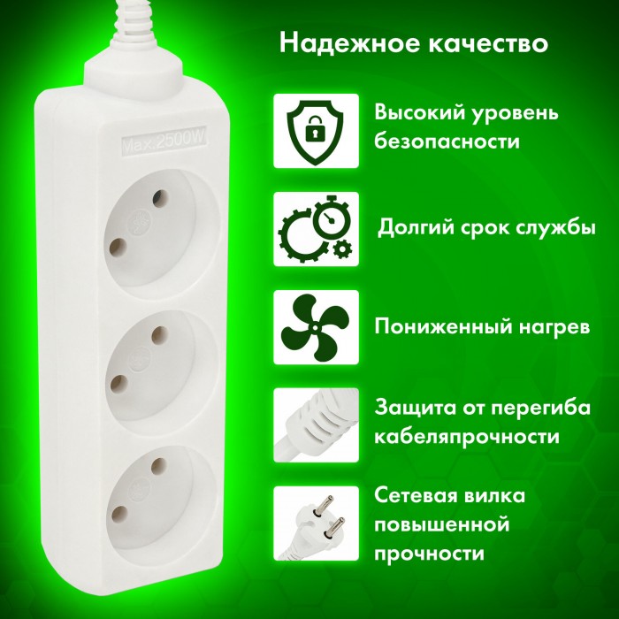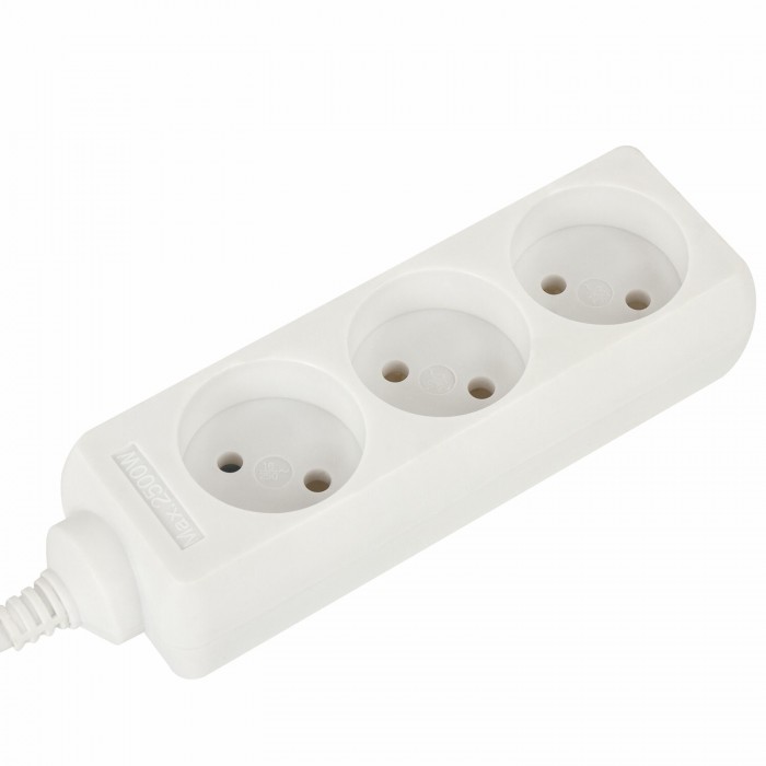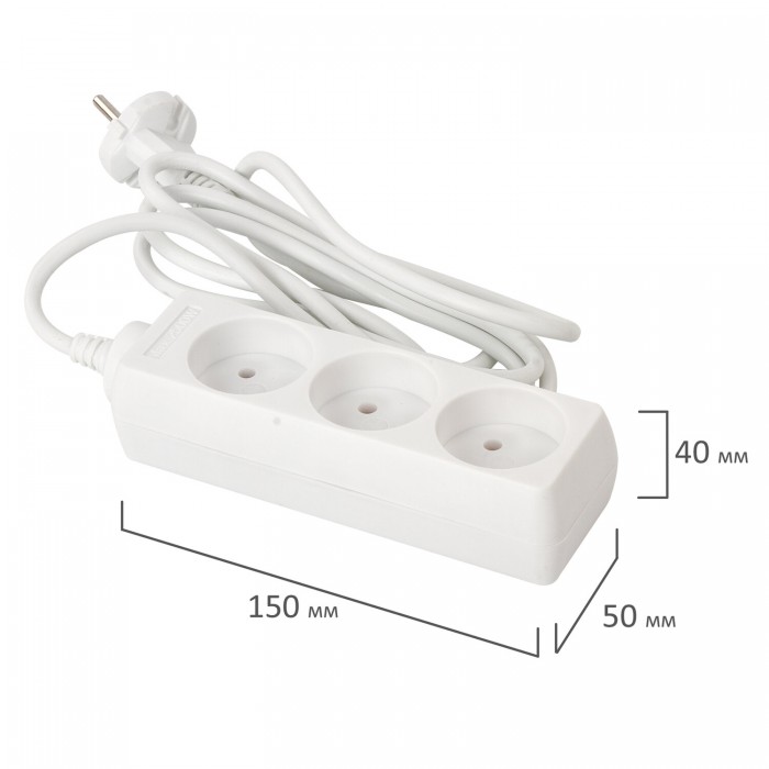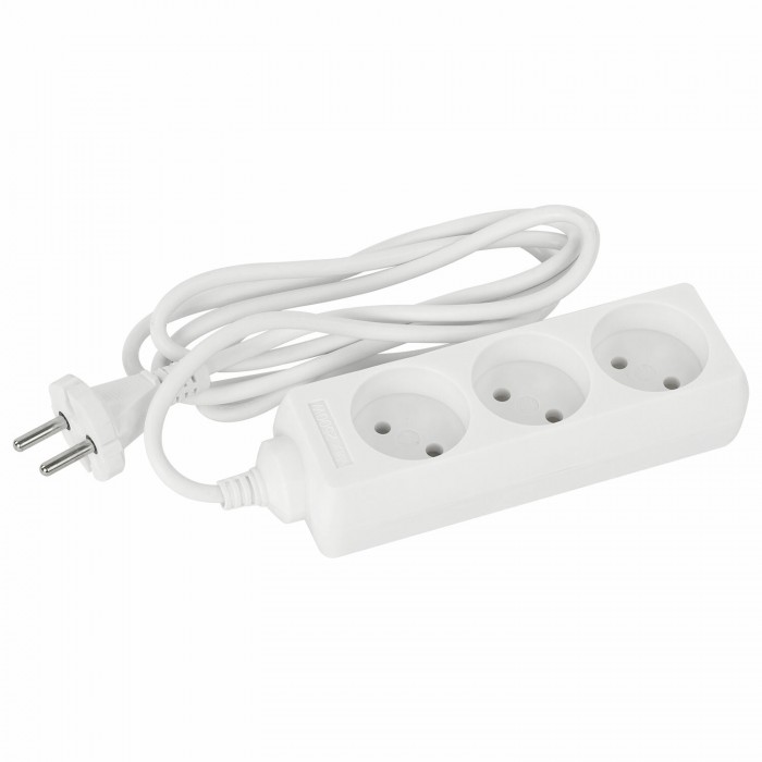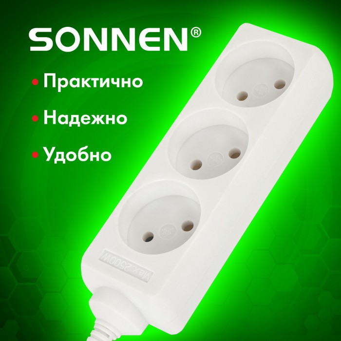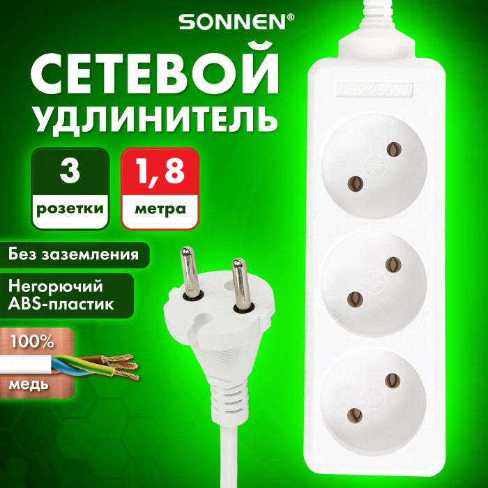 Удлинитель сетевой SONNEN U-131, 3 розетки, без заземления, 6 А, 1,8 м, белый, 511428