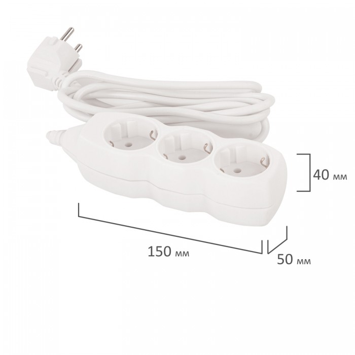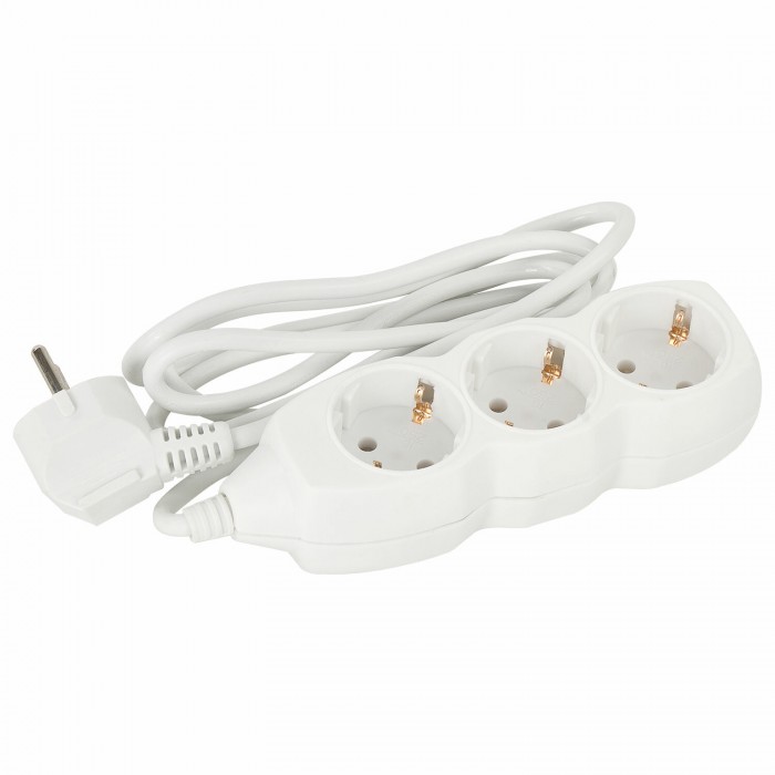 Удлинитель сетевой SONNEN U-131G, 3 розетки, c заземлением, 10 А, 1,8 м, белый, 511431