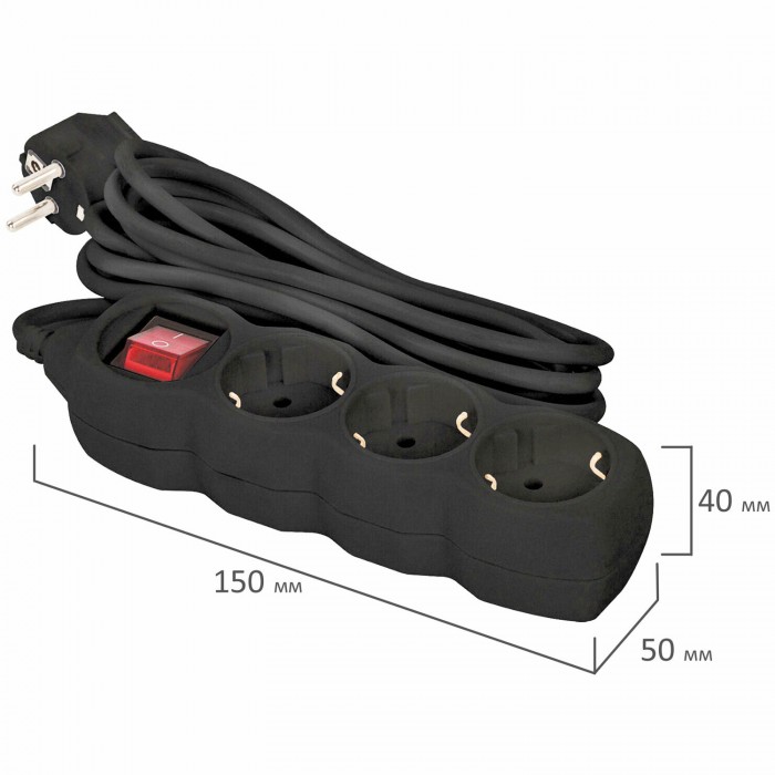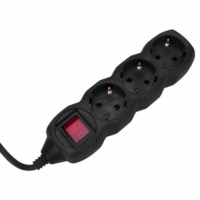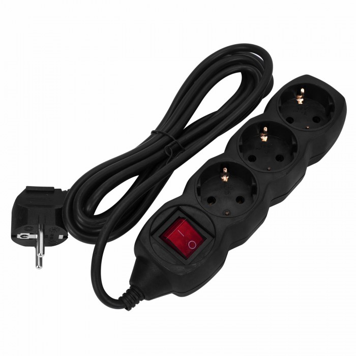 Удлинитель сетевой SONNEN U-133GS, 3 розетки, c заземлением, выключатель, 10 А, 3 м, черный, 513266