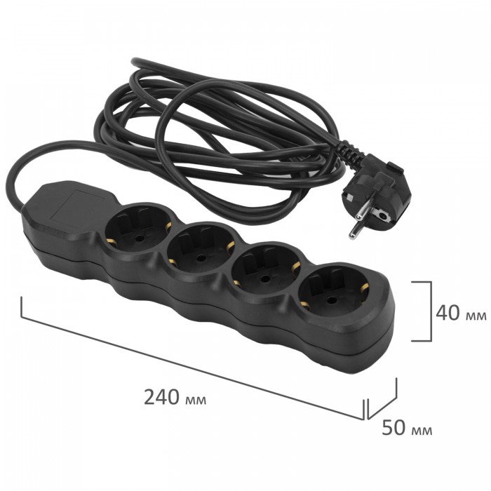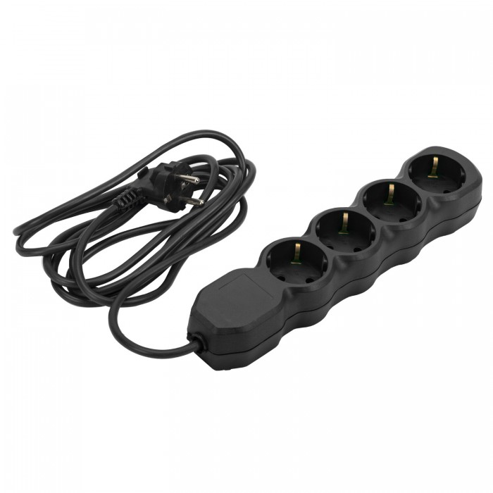 Удлинитель У10-004 4 розетки, с заземлением, 10 А, 3 м, черный, 6882