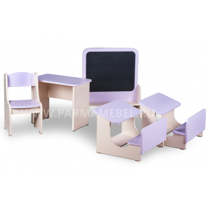 - Изделие состоит из пяти предметов: двух парт, стола, стула, аудиторной доски