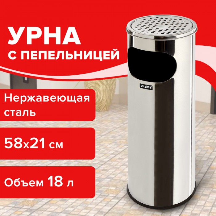 Урна с пепельницей LAIMA PROFESSIONAL предназначена для утилизации отходов, помогает поддержать порядок и чистоту как внутри помещения, так и на входе в здание.