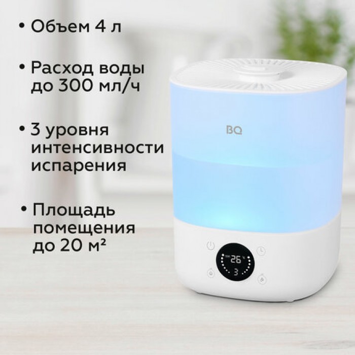 Увлажнитель воздуха BQ (БИ-КЬЮ) HDR1009, объем бака 4 л, 25 Вт, LED-дисплей, аромаконтейнер, белый, 86196444