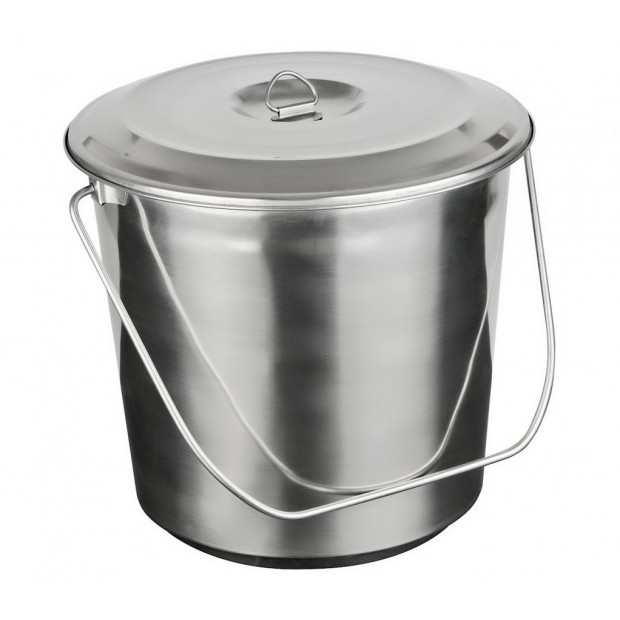 Ведро 10,0л с крышкой, нержавеющая сталь с меркой