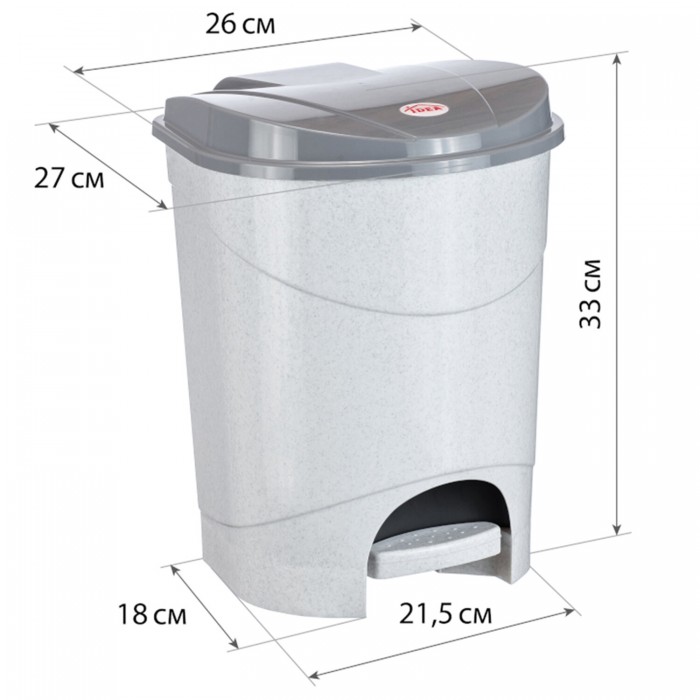 Ведро мусорное с КРЫШКОЙ и ПЕДАЛЬЮ 11 литров, 33х26х27 см, серое, IDEA, М 2891, М2891