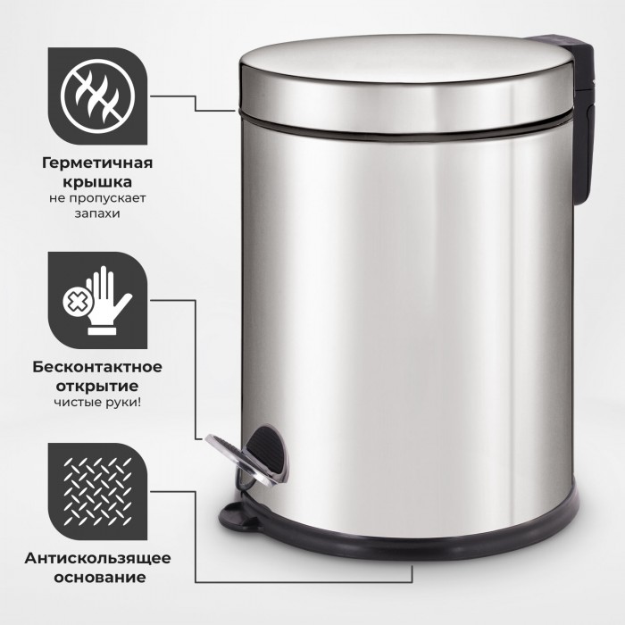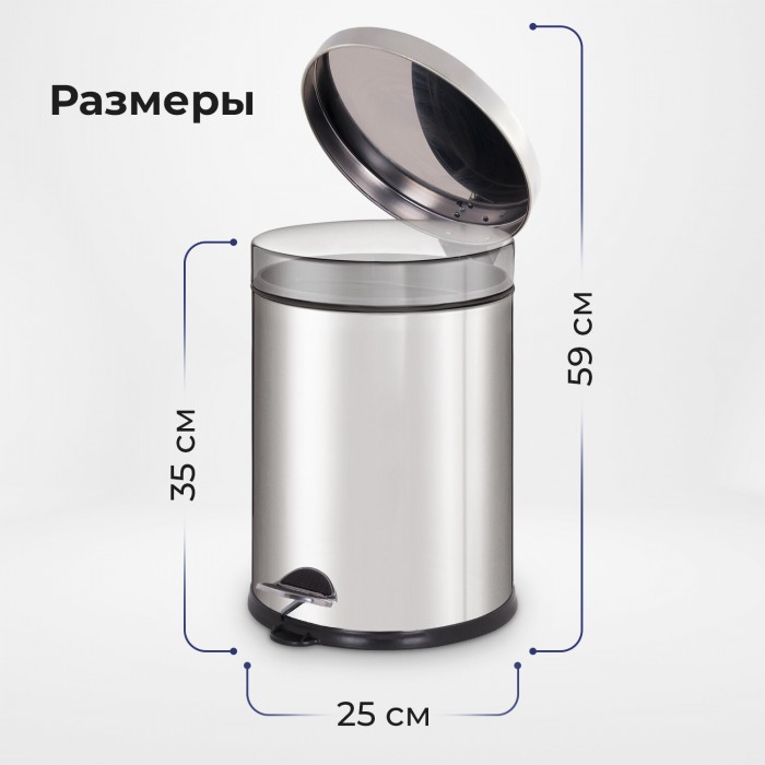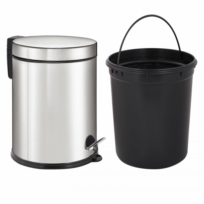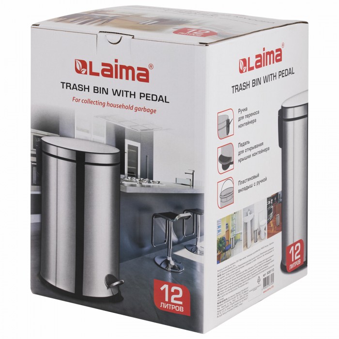 Ведро мусорное с педалью 12 литров "Classic Plus", ЗЕРКАЛЬНОЕ, нержавеющая сталь, со съемным внутренним ведром, LAIMA, ТУРЦИЯ, 608113
