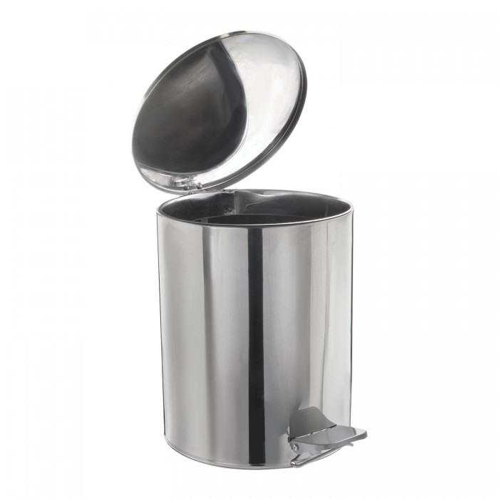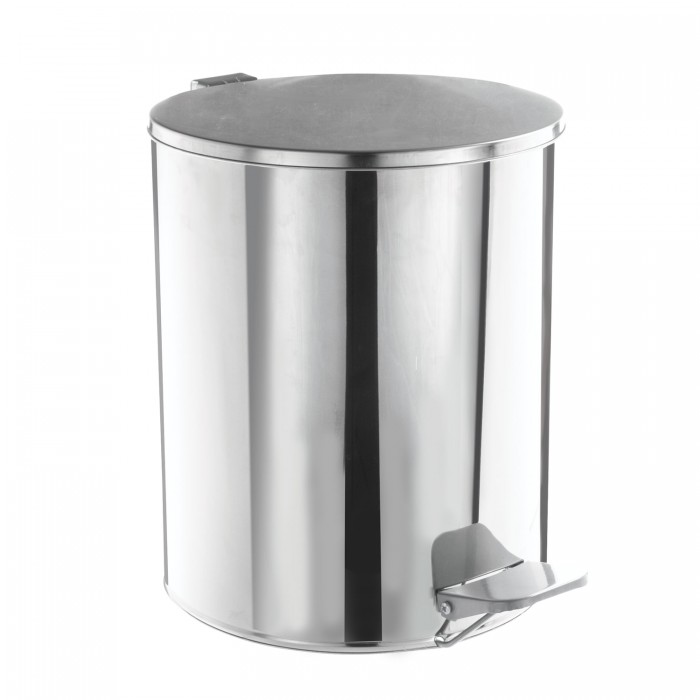 Ведро мусорное с педалью 15 литров, УСИЛЕННОЕ, хром, нержавеющая сталь, ТИТАН