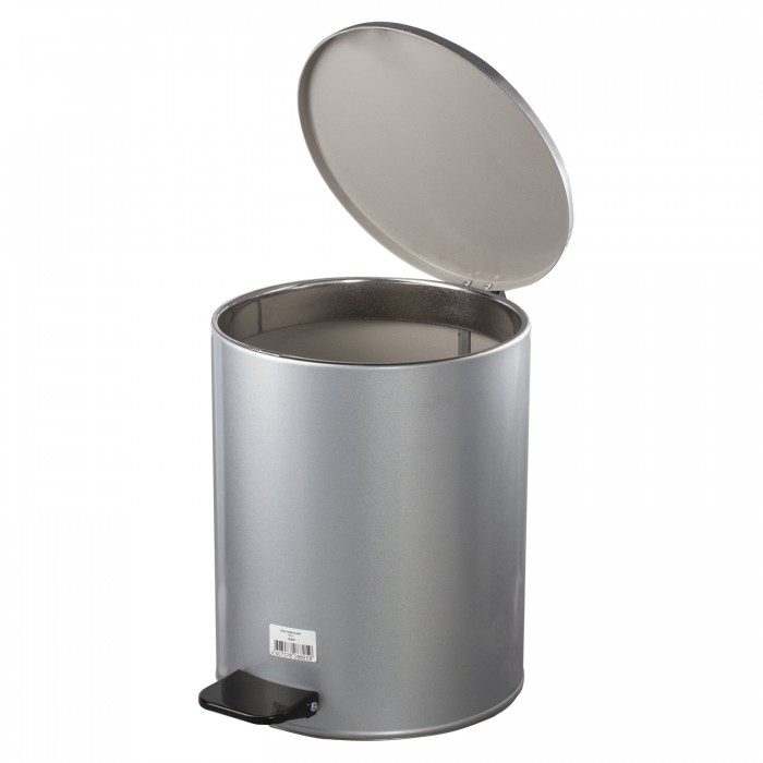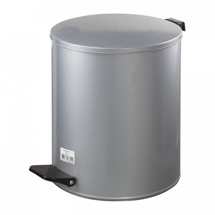 Ведро мусорное с педалью 15 литров, УСИЛЕННОЕ, серое, оцинкованная сталь, ТИТАН