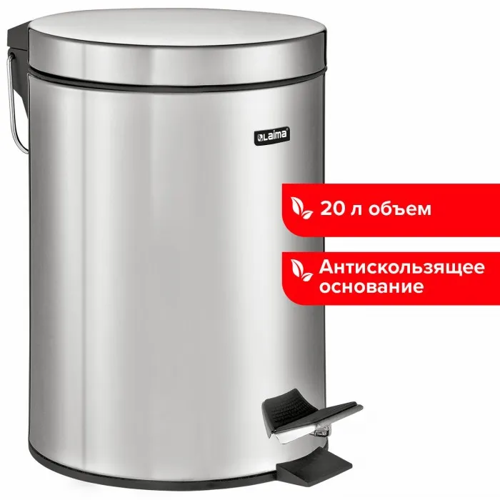 Ведро мусорное с педалью 20 литров "Classic", ЗЕРКАЛЬНОЕ, нержавеющая сталь, со съемным внутренним ведром, LAIMA, 232262