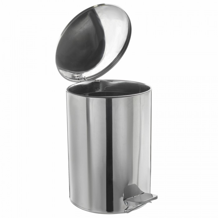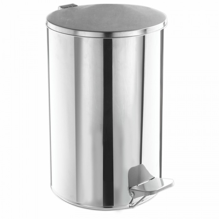 Ведро мусорное с педалью 20 литров, УСИЛЕННОЕ, кольцо под мешок, хром, нержавеющая сталь, ТИТАН