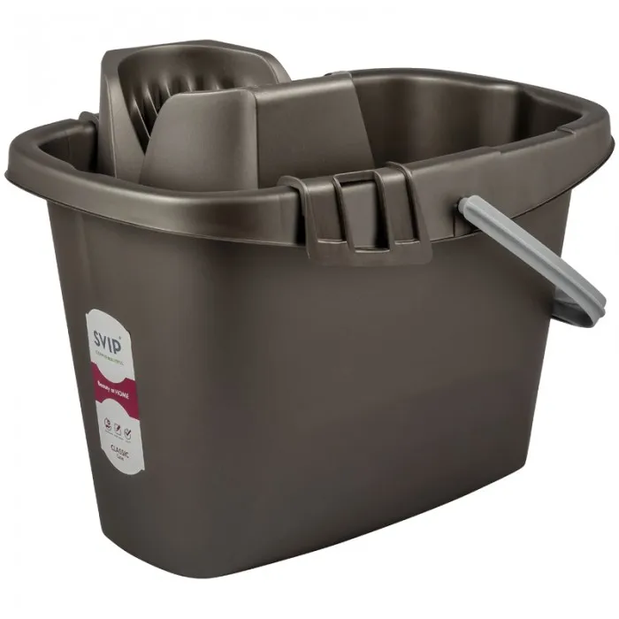 Ведро с отжимом Spin&Clean прямоугольное с отжимом из коллекции Step, объемом 13 л из прочного долговечного пластика. Съемный моп компактно размещается на корпусе, открывая основную часть ведра для полоскания швабры. Отжим тщательно отжимает швабры ленточного и веревочного типов. Ведро легко переносить наполненным за счет эргономичной формы и правильного распределения веса. Также ведро прямоугольной формы проще хранить. Стильный цвет антрацит с металлизированным эффектом не выцветает и не стирается со временем. Для комфортного использования в верхней части ведра по бокам находятся носики для выливания воды, а в нижней части - выемка для придерживания рукой. Нескользящая ручка прочная, с удобным утолщением под руку. Края ведра загнуты для безопасного использования. Ведро изготовлено из пищевого пластика и может быть использовано для хранения питьевой воды или пищевых продуктов. Можно собрать коллекцию надежных и удобных товаров для уборки Spin&Clean Step.