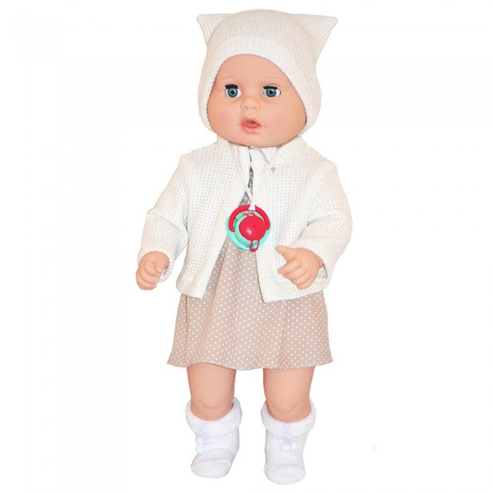 Размер упаковки: 66 х 30 х 15 см Высота куклы: 50 см Страна производитель: Беларусь Материал: ПВХ, Комплектация: кукла Вита, комплект одежды (платье, шапочка, кофточка, носки) Возраст: Карапуз Вита от ТМ «Страна кукол» станет отличным подарком для каждой девочки. Игры в куклы благоприятно влияют на психологическое и эмоциональное состояние ребёнка. В процессе игры дети нередко разыгрывают интересные сценки, где ребёнок проецирует роль родителя, тем самым учится заботится о близких. Особенности: - милое, детализированное личико; - глаза у куклы вставные закрывающиеся, с густыми ресничками; - парик - рельефный; - ручки и ножки вращаются; - кукла может сидеть; - Вита озвучена.