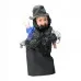 Размер 31 см. Голова изготовлена из безопасного пвх-пластизоля, роспись лица аэрографом и вручную. Туловище-перчатка из плательно-костюмной ткани. Фрак из трикотажа ворсового с декоративной пуговицей. На передней части туловища-перчатки настрочен бант из трикотажа ворсового, шляпа из плательно-костюмной ткани с креплением-резинкой.
